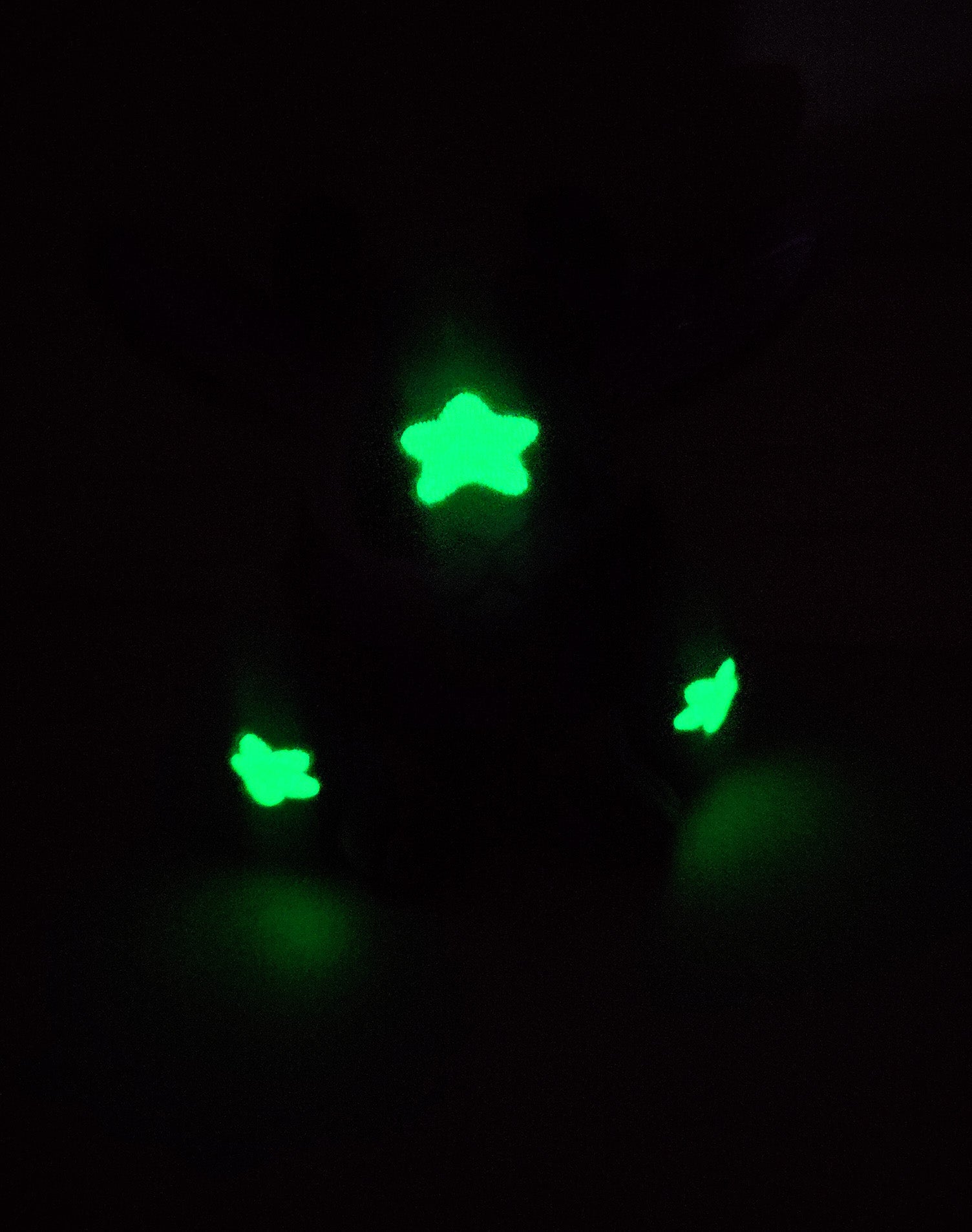 Don't let their looks fool you! As adorable as they are, these mini-sized Lunar Jackalopes are a mischievous bunch. Comes in 4 different colors (Blue Moon, Blood Moon, Harvest Moon & Black Moon) with embroidered wings on the back with special glow-in-the-dark stars and fuzzy mane.